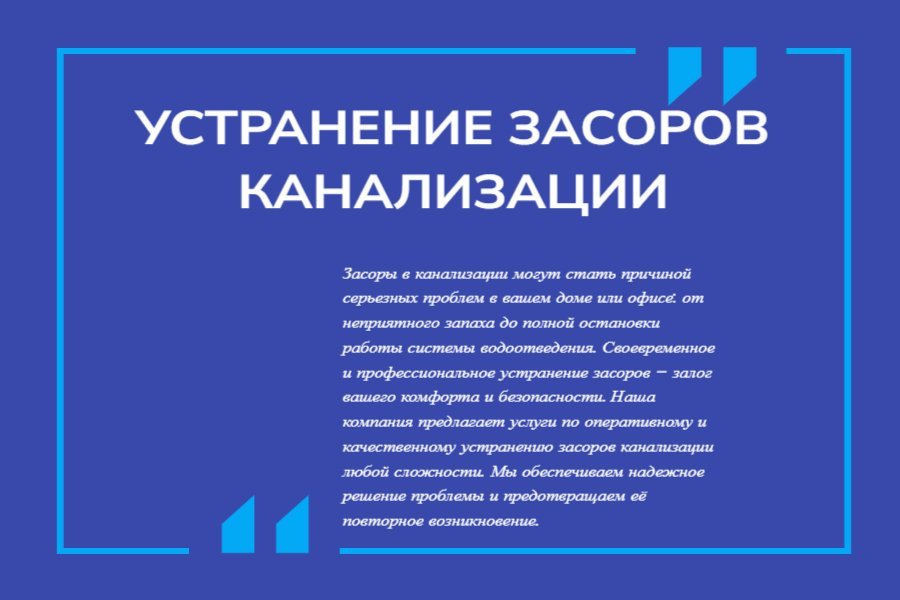- Индивидуальный подход. Каждый случай уникален, и мы подходим к каждой ситуации с учетом её особенностей. Наши мастера тщательно анализируют причины засора и предлагают наилучший способ его устранения. Мы также предоставляем консультации по правильной эксплуатации канализационной системы, чтобы избежать повторных засоров.
